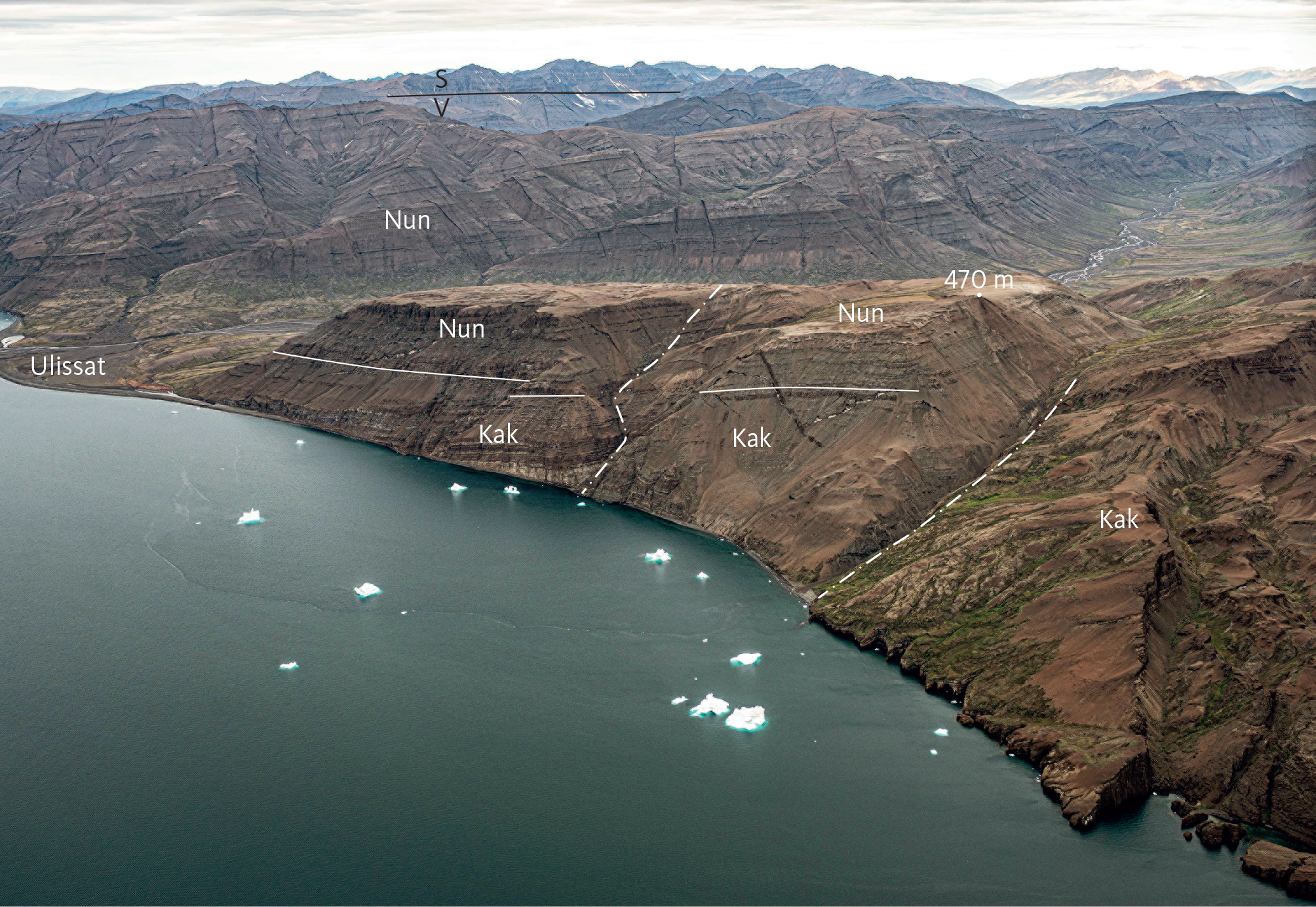 The Cretaceous boundary fault system has apparently facilitated the intrusion of magmas, as seen from a number of large basalt sills intruded close to the fault at Simiutaq, along the Siuteqqut Kuuat valley, near Firefjeld and on Itsaku (Fig. 6). These sills are compositionally identical to the Svartenhuk Formation and we therefore consider that they are also of late Paleocene age.
