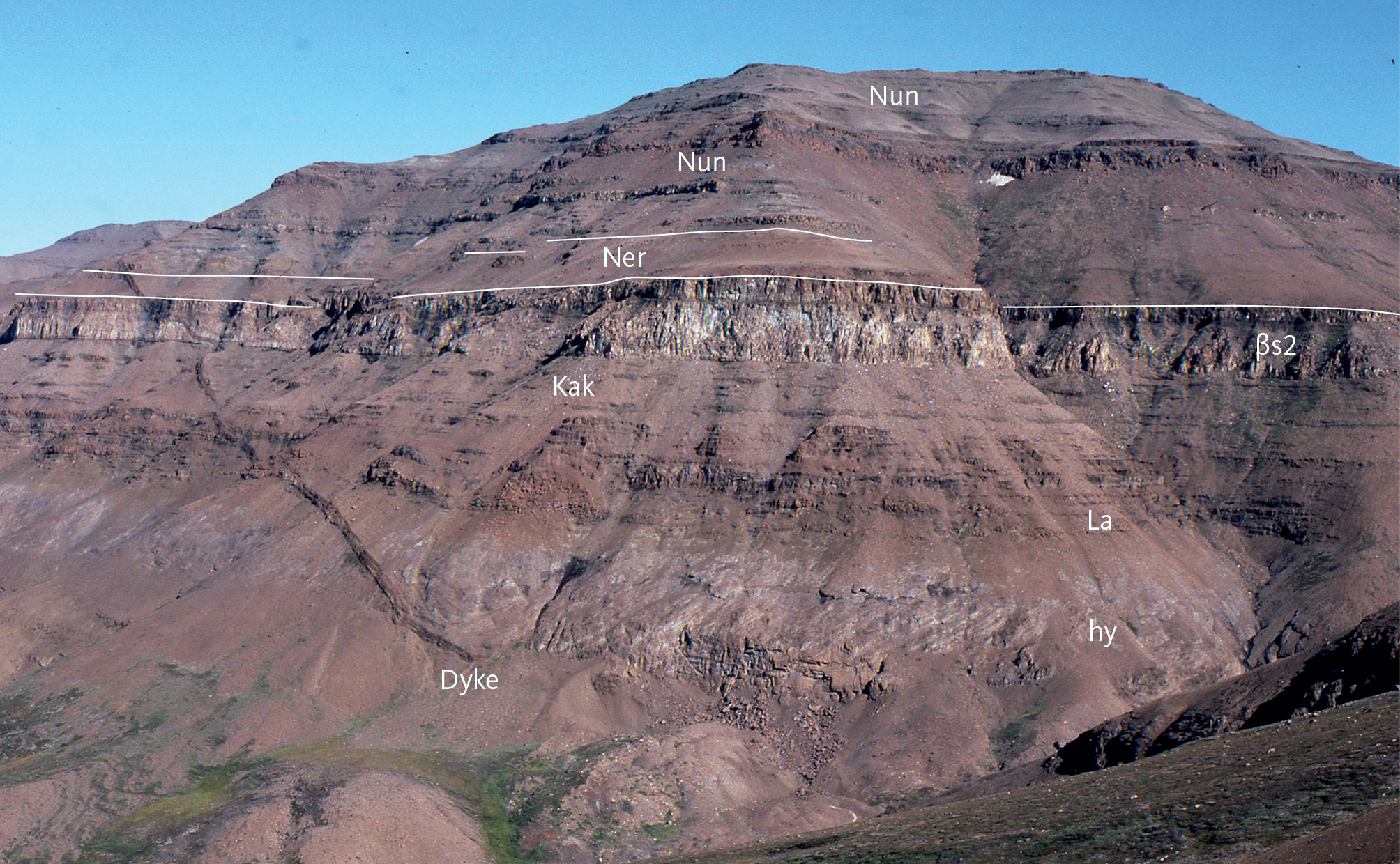Dykes of all three formations are present. The distribution of dykes of the Naqerloq Formation suggests that this originally extended much farther east.