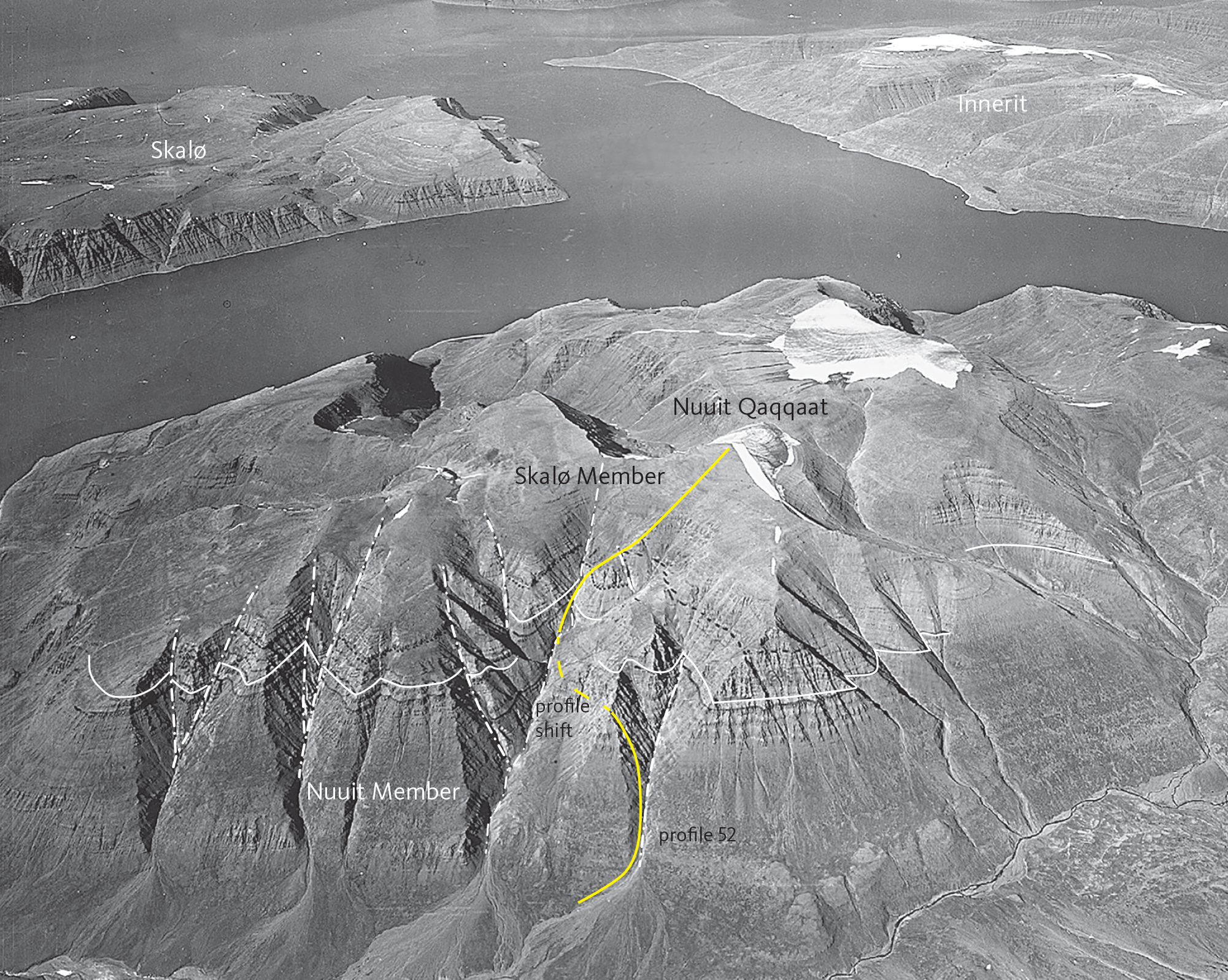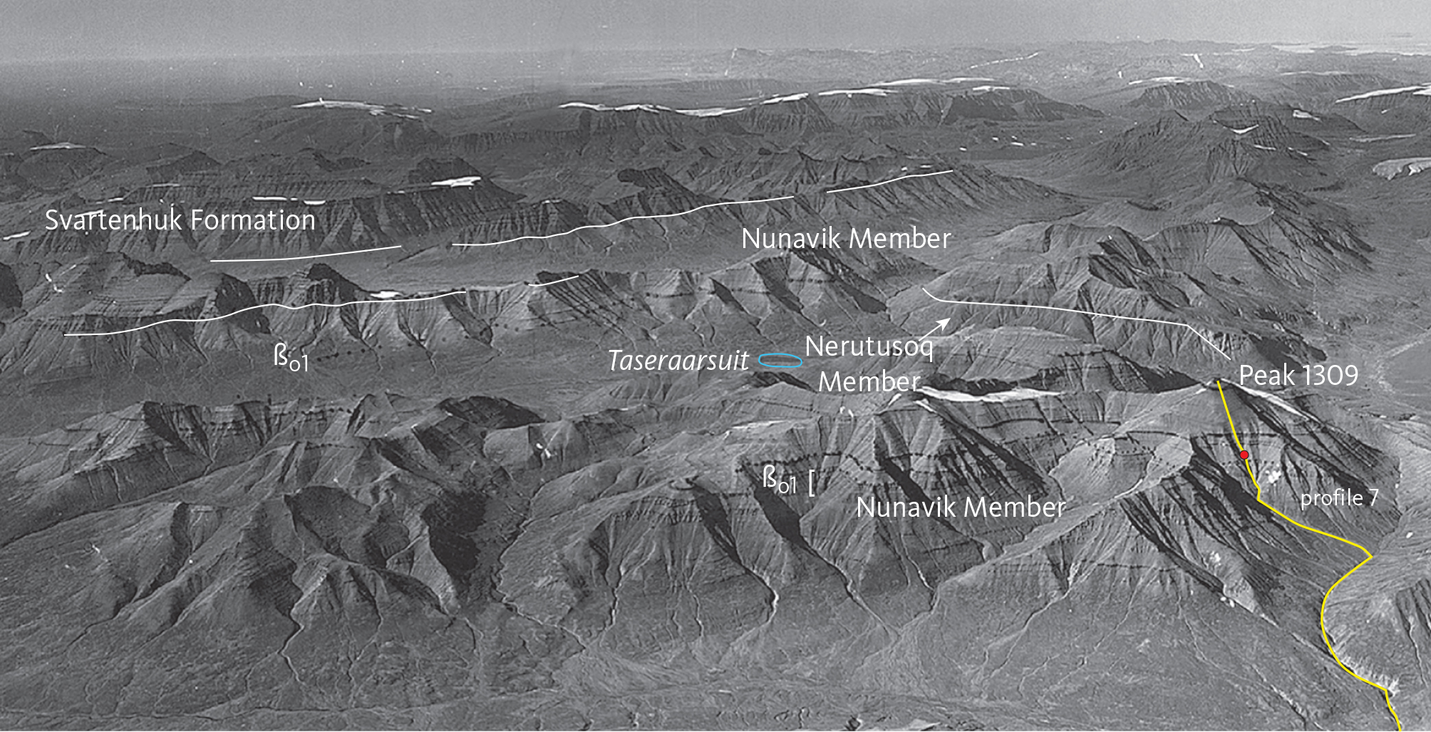 Reference sections. On Svartenhuk Halvø, Kakilisaat (profile 4) covers the Kakilisaat and Nerutusoq Members and the lowermost Nunavik Member. Peak 1078 m (profile 9) covers the main part of the Nunavik Member, and Peak 1309 m (Profile 7) covers the top part of the Nunavik Member and the boundary to the Svartenhuk Formation.