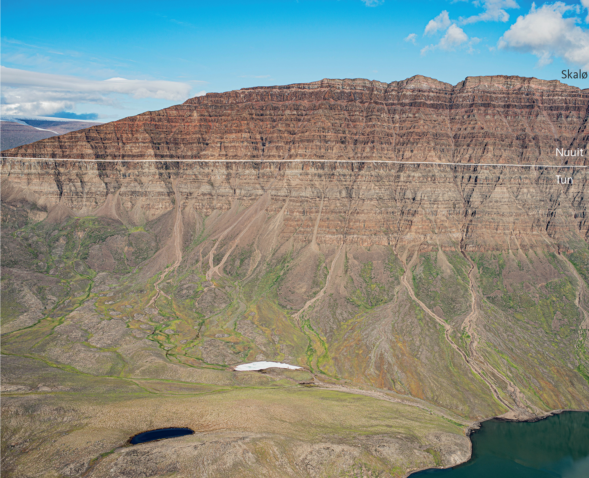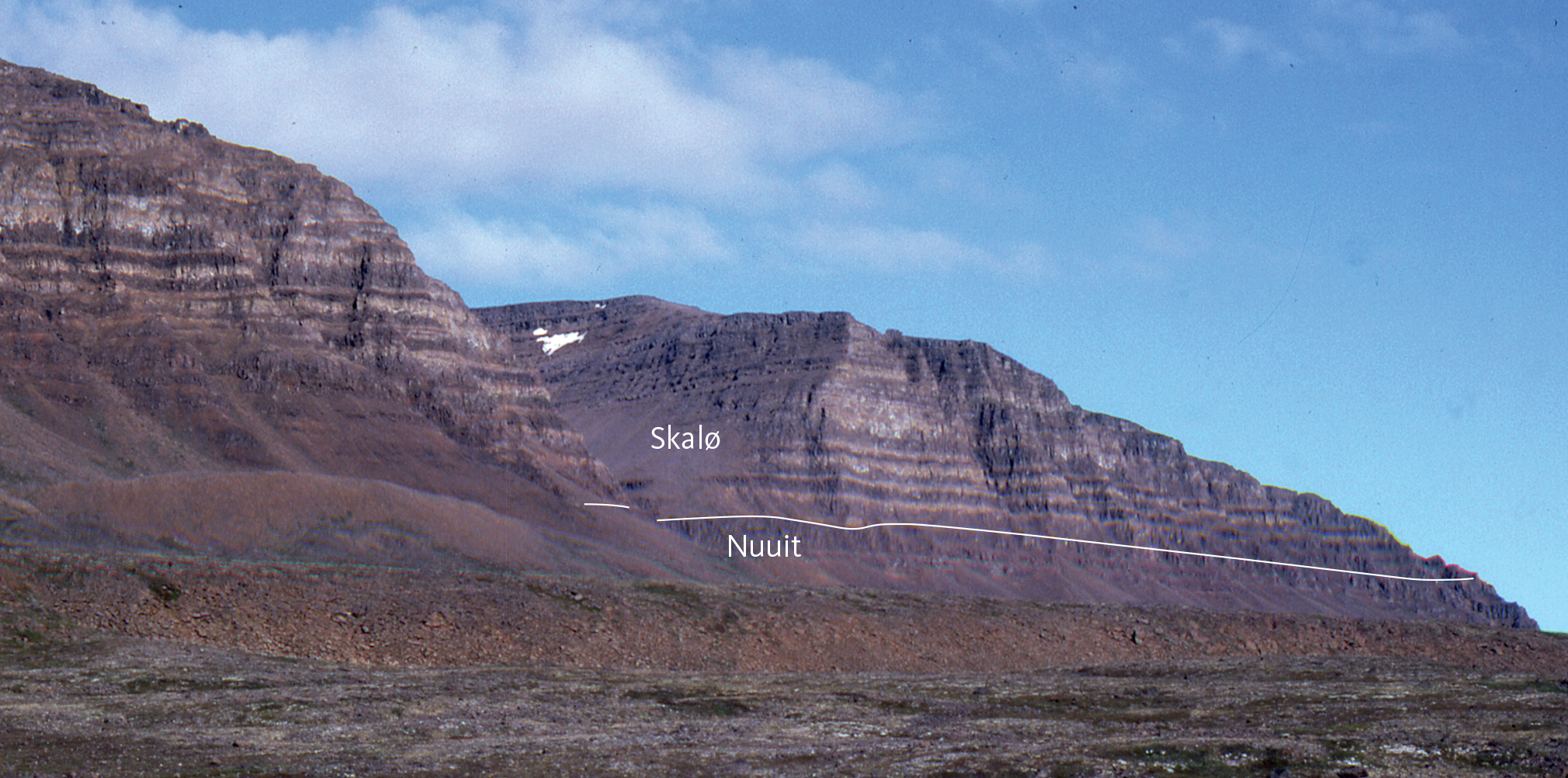 On the Precambrian basement, the thickness is reduced to c. 500 m in the Qinngusaaq area, and the formation thins out at a height of 1100 m east of Siuteqqut.