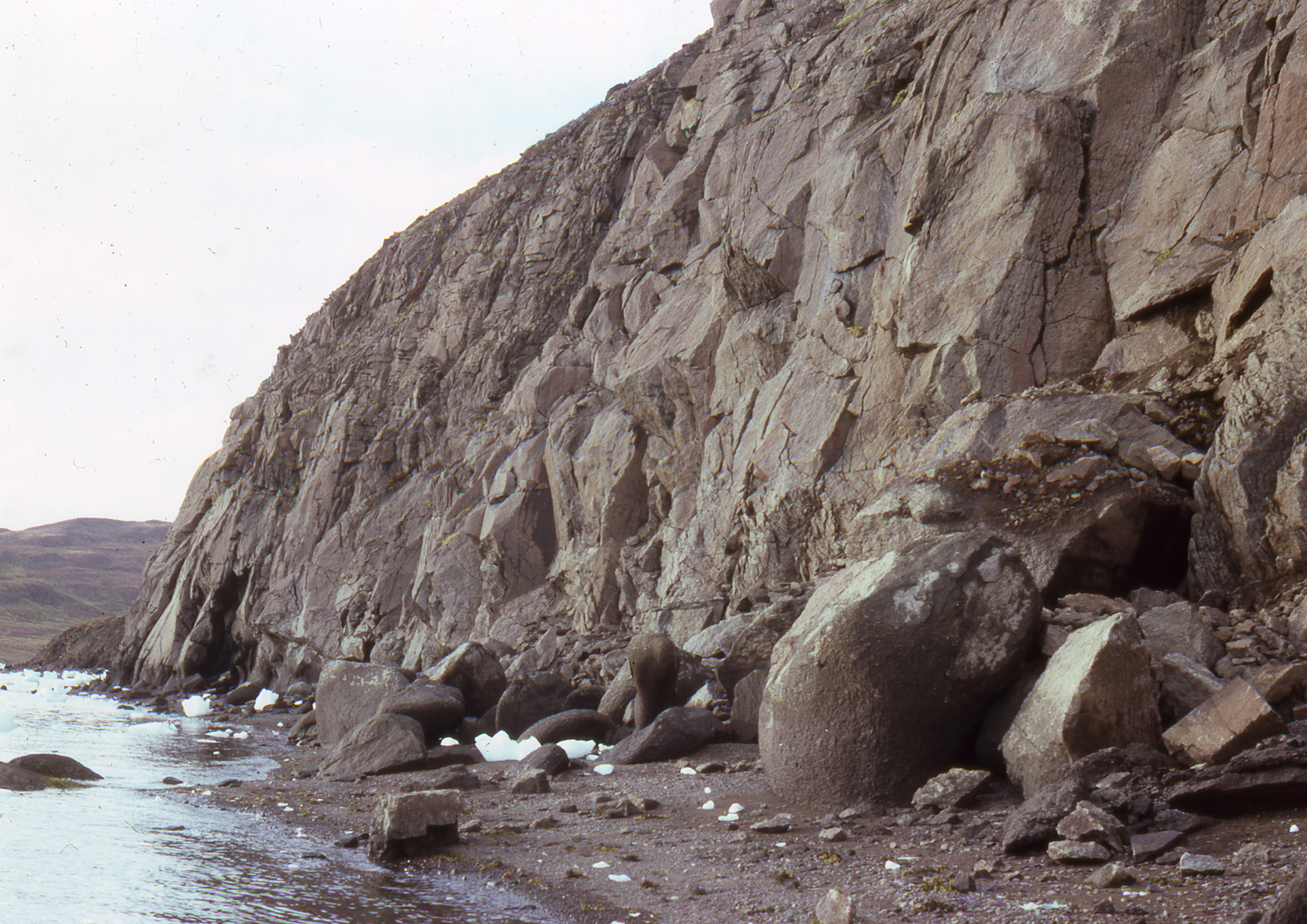 Loc. B. There are indications of synvolcanic subsidence in the southern Innerit peninsula just east of the Paannivik profile (64, Fig. 8), where the lower part of the Tunuarsuk Member dips 4–6°SW with gradually decreasing dip up-section to 2°SW in the upper part and to 1°SW at the boundary between the Nuuit and Skalø Members on Paannivik, see dip measurements on the geological map of Larsen & Grocott (1991).