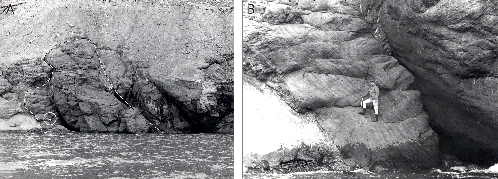 The earliest scientific descriptions of the volcanic rocks in West Greenland were published by Giesecke (1823; 1910) and Rink (1852) who used the terms “Floetz-trap” or “Trap-formation” and distinguished between “Traptuff” (hyaloclastite), “Basalt-tuff” (pillow breccia), “amygdaloid Basalt” and “columnar Basalt”. The first geological map was produced by Steenstrup (1883) and shows the distribution of basement, sediments and volcanic rocks comprising “Traptuf (Palagonit?)” and “Trap” between 69°10′N and 72°35′N, with the major parts of the inland areas still unmapped.